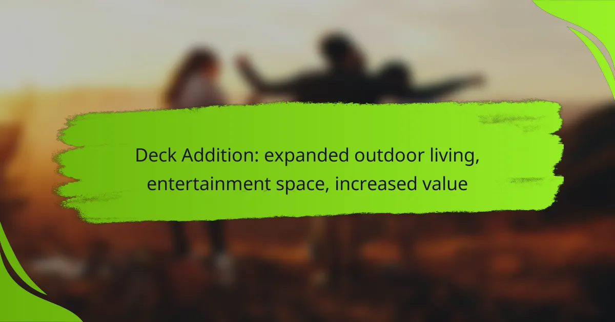 A deck addition can significantly enhance property value by expanding usable outdoor space and improving the overall appeal of a home. This investment not only provides a functional area for entertainment but also attracts potential buyers, making the property more desirable in the real estate market.